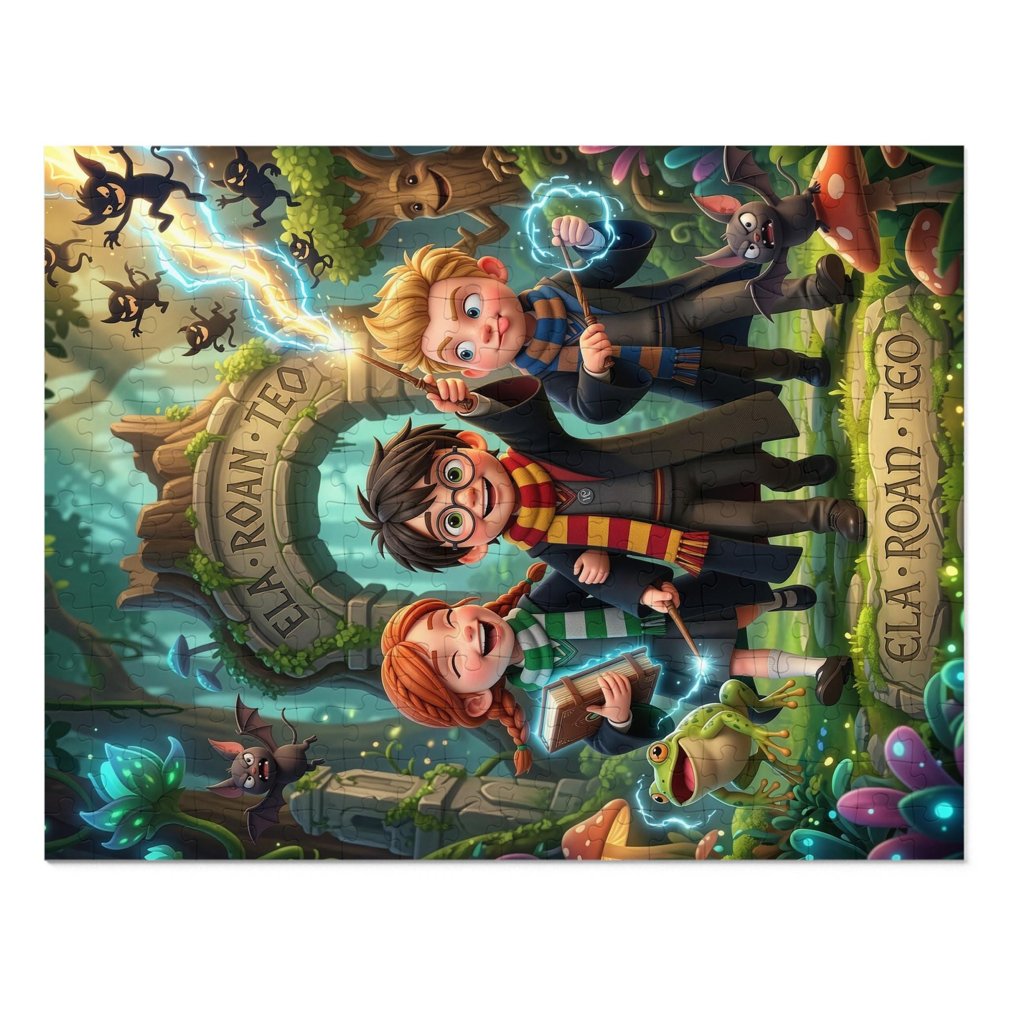 Rediscover evening magic with a handcrafted puzzle that brings a cozy, whimsical world to your table. This glossy, high-color puzzle captures three young spellcasters exploring an enchanted forest—glowing mushrooms, playful frogs, and hidden runes waiting to be found. Each piece clicks together precisely, turning focused quiet into shared laughter and small victories as the image slowly reveals its secret. Finished pieces fit snugly and the matching tin and box keep every night’s progress safe and ready for the next session. It’s tactile, meditative, and made for anyone who loves getting lost in detail while swapping stories and hot cocoa.