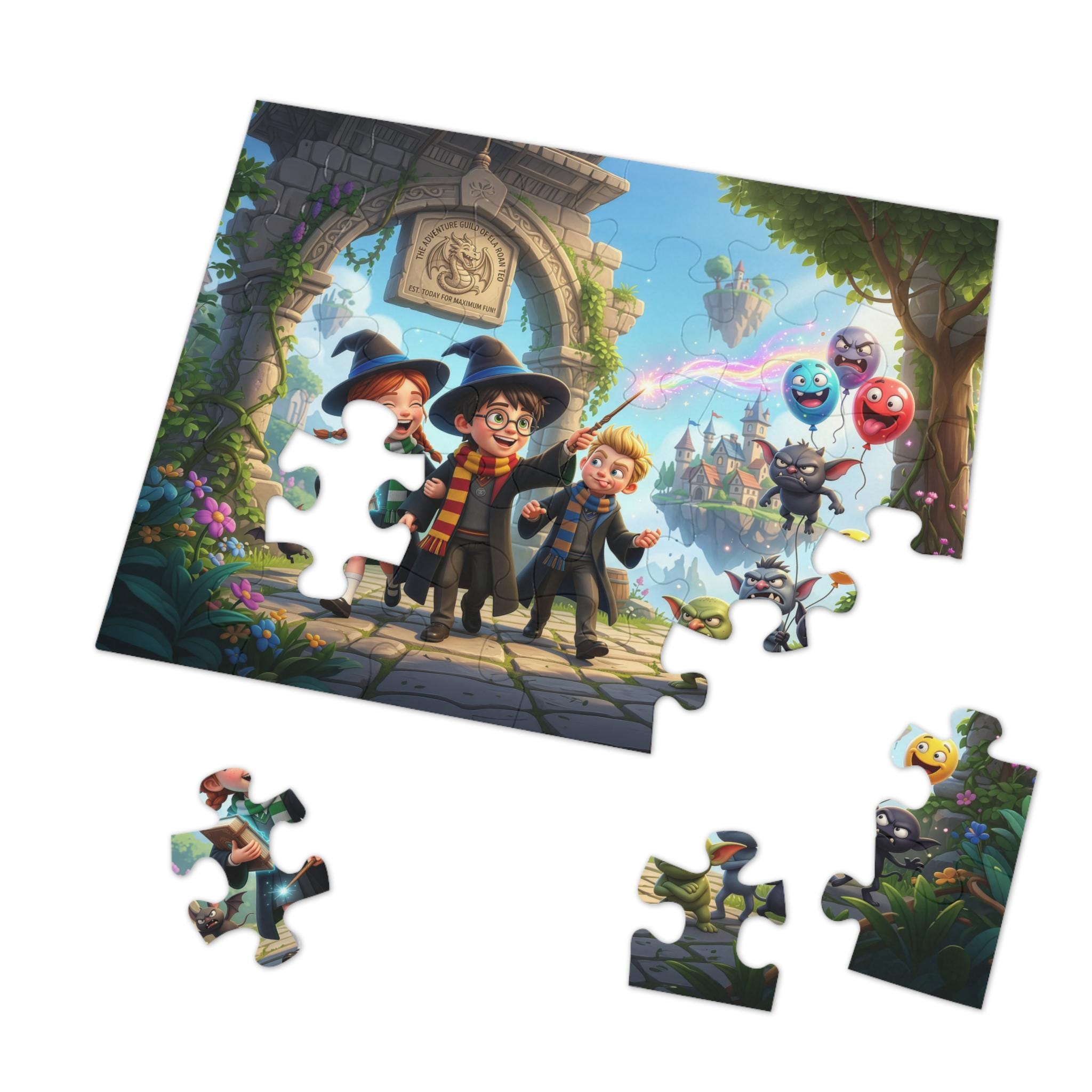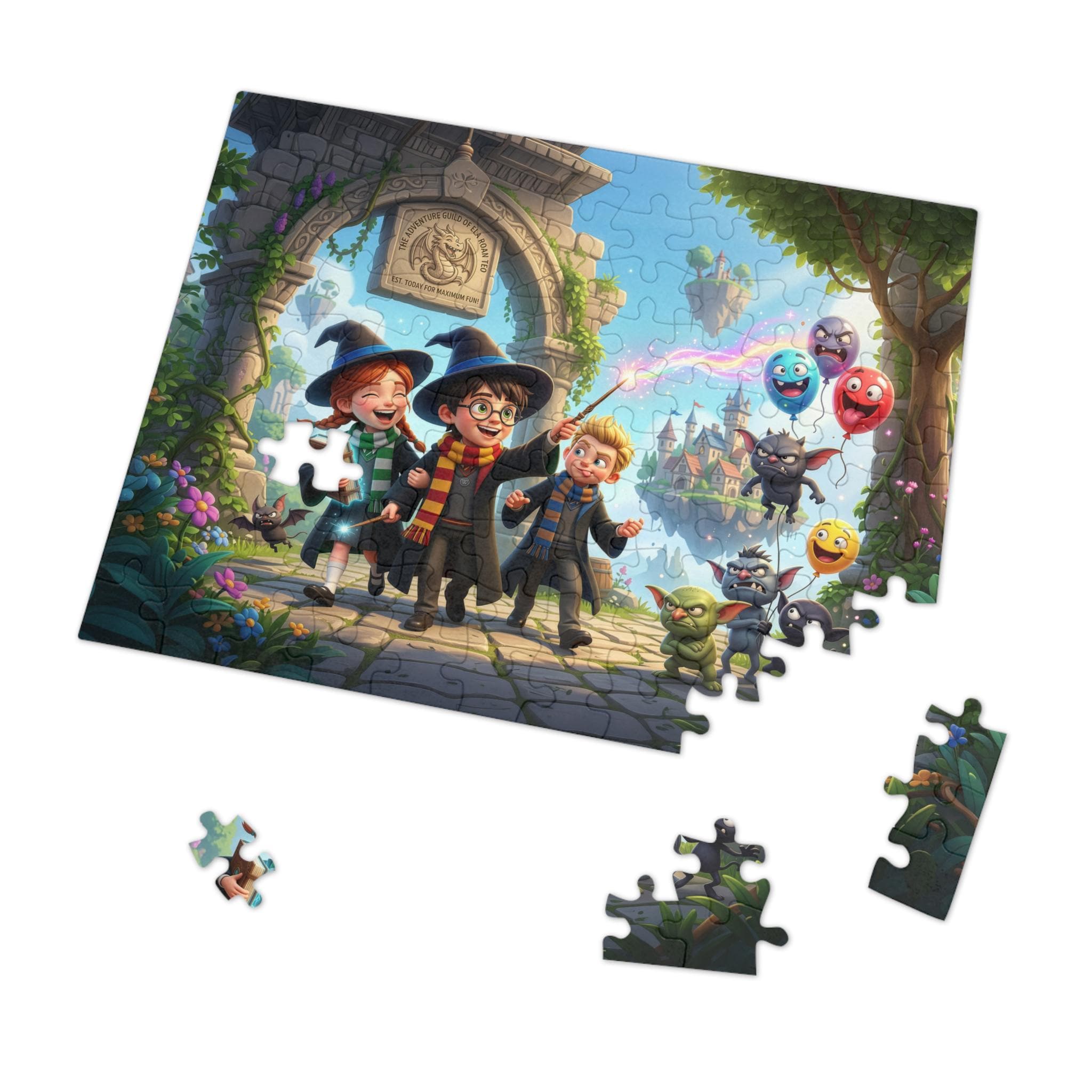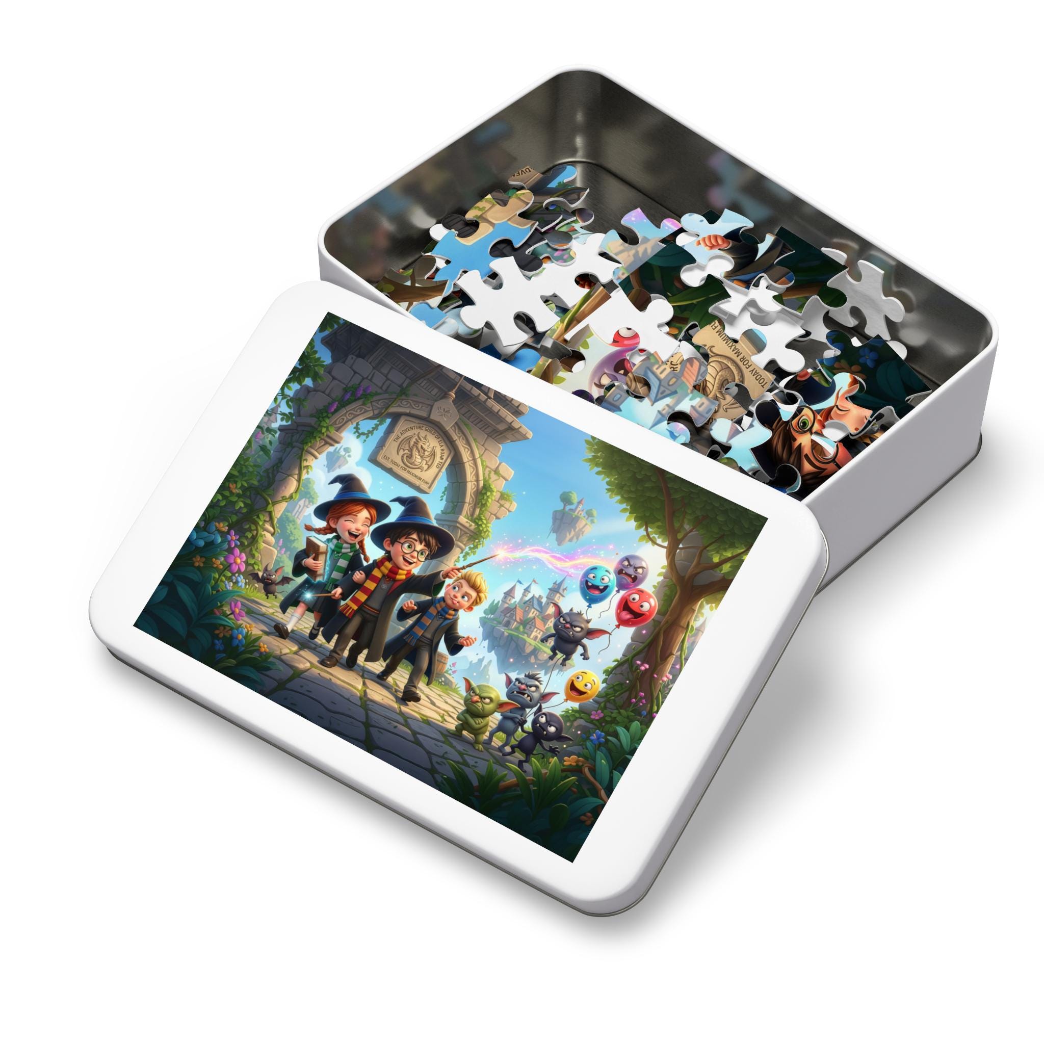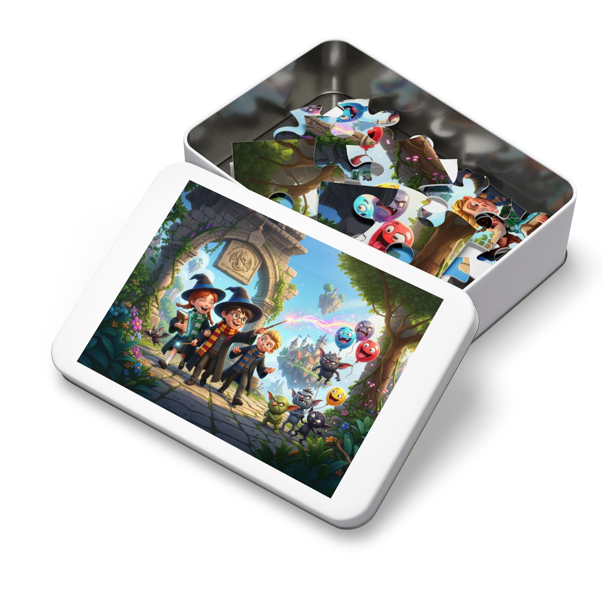 Bring storytime and warm nostalgia to your table with this collectible jigsaw puzzle in a white metal tin. Bright, glossy printing makes every enchanted detail pop—wandering castles, cheerful young wizards, and mischievous magical creatures come alive as you assemble each interlocking piece. The compact tin keeps the puzzle safe between sessions and features the finished artwork on its cover so you can display it or use it as a handy assembly guide. Choose from multiple piece counts to match your patience and skill—quick 30-piece scenes for little hands or immersive 1000–2000-piece challenges for long, cozy evenings.