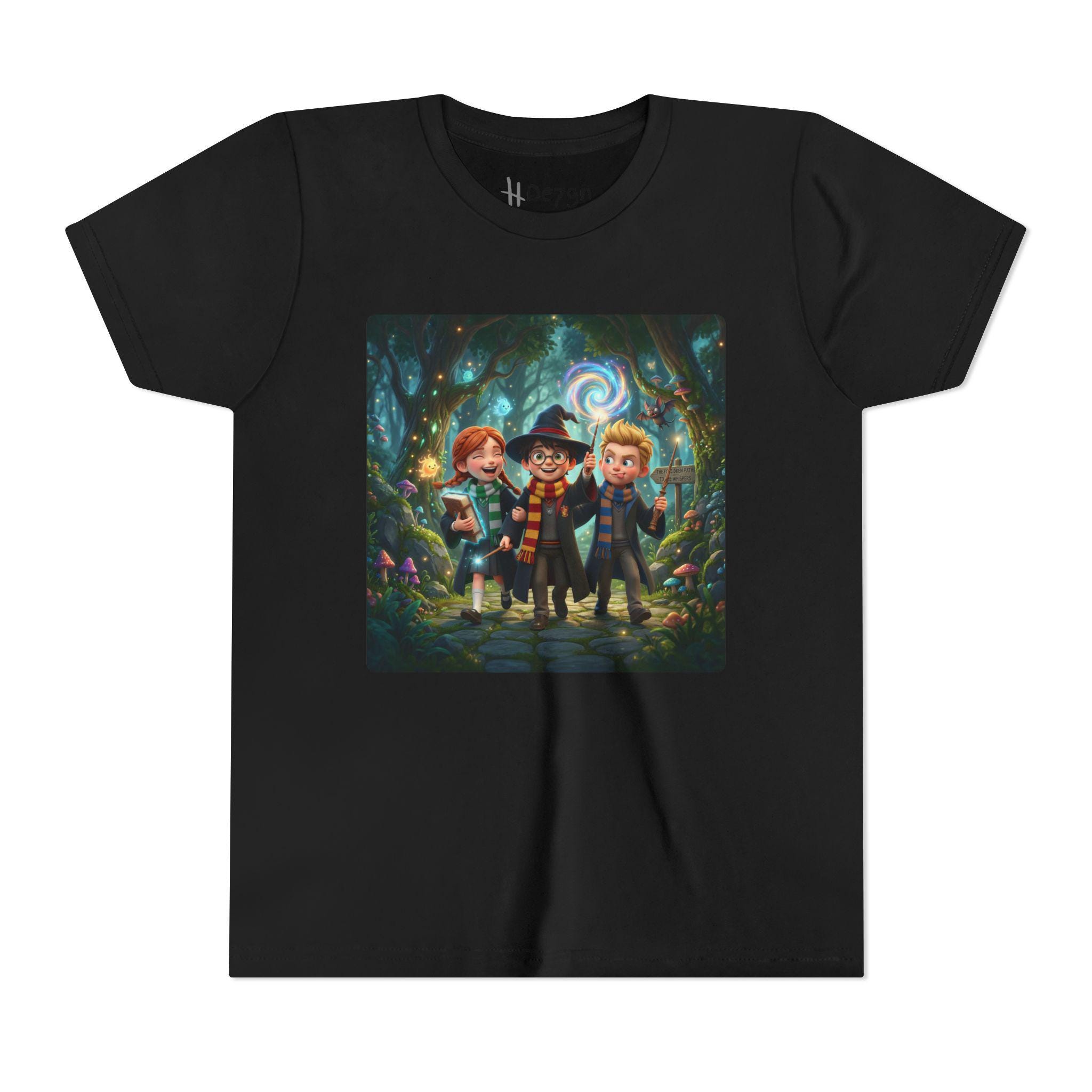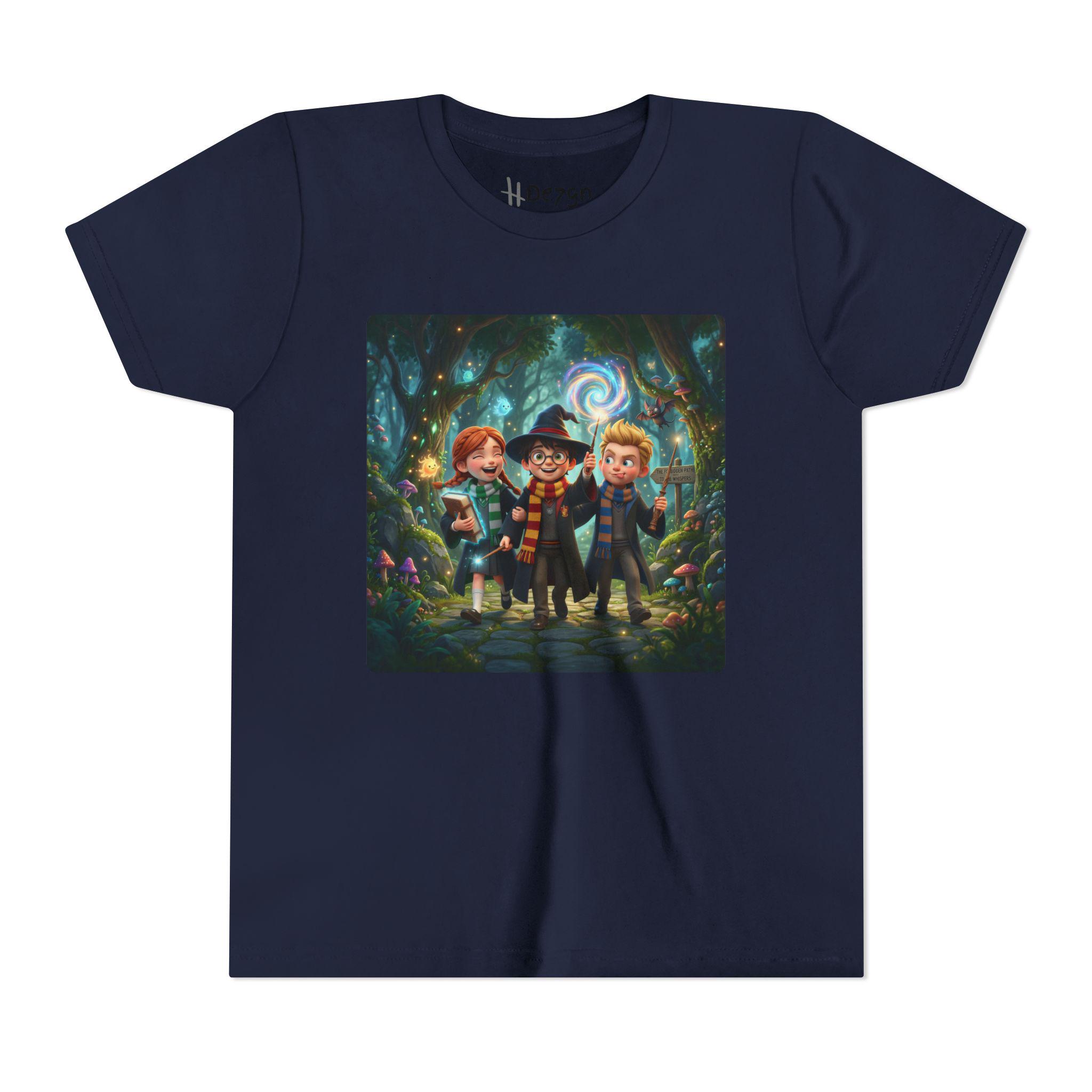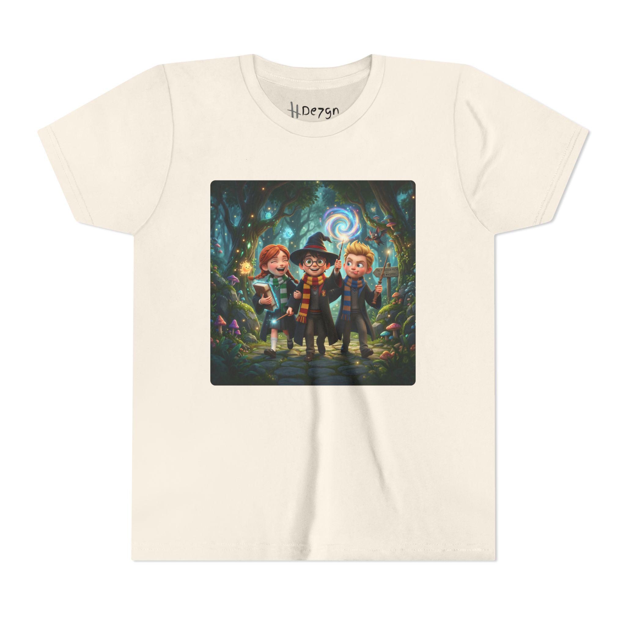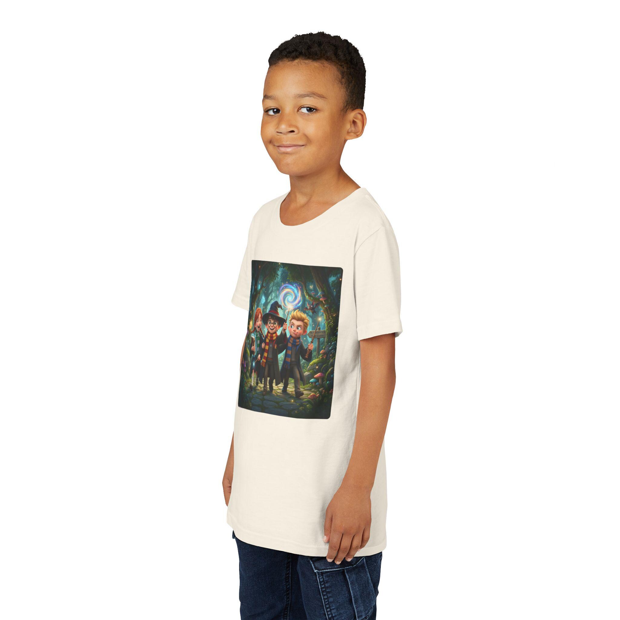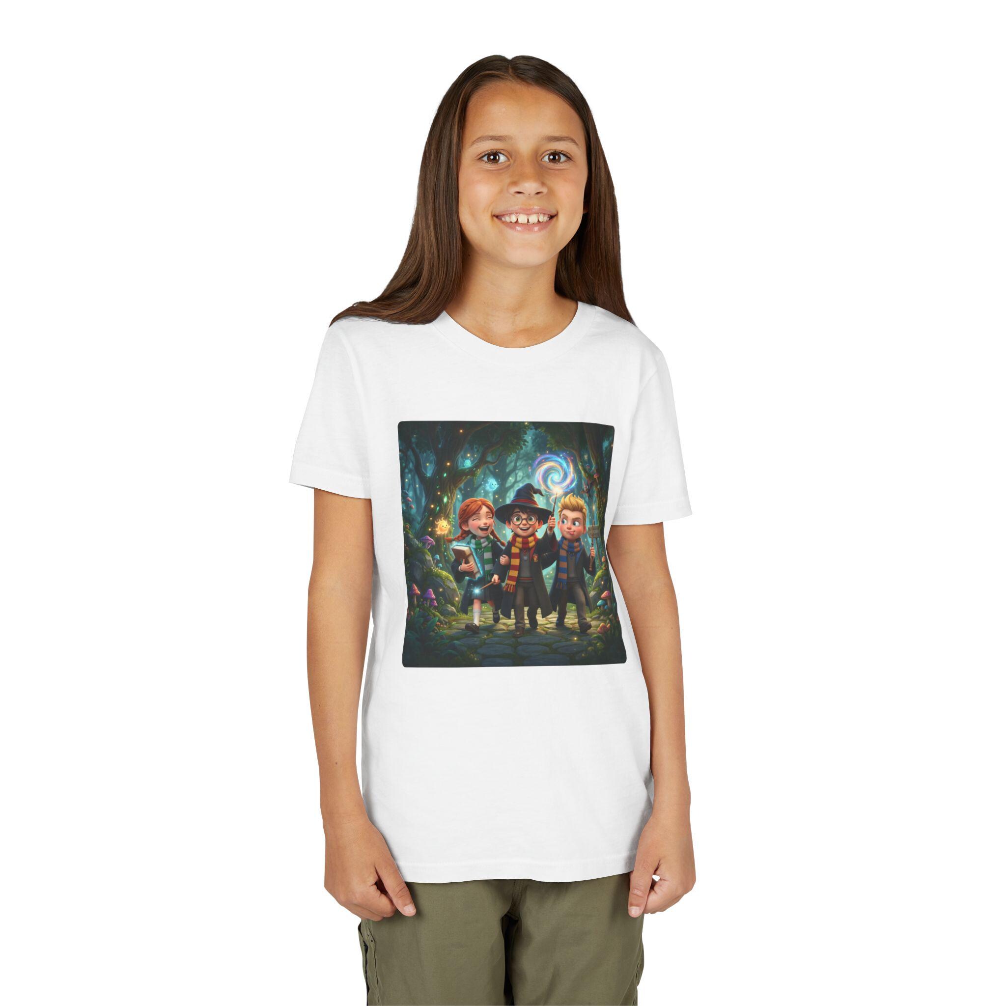Cute Wizard Trio Tee featuring three young wizard friends – Ela, Roan, and