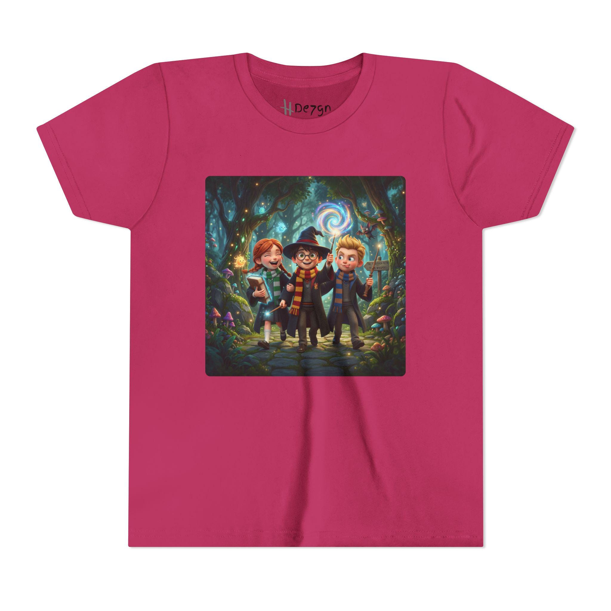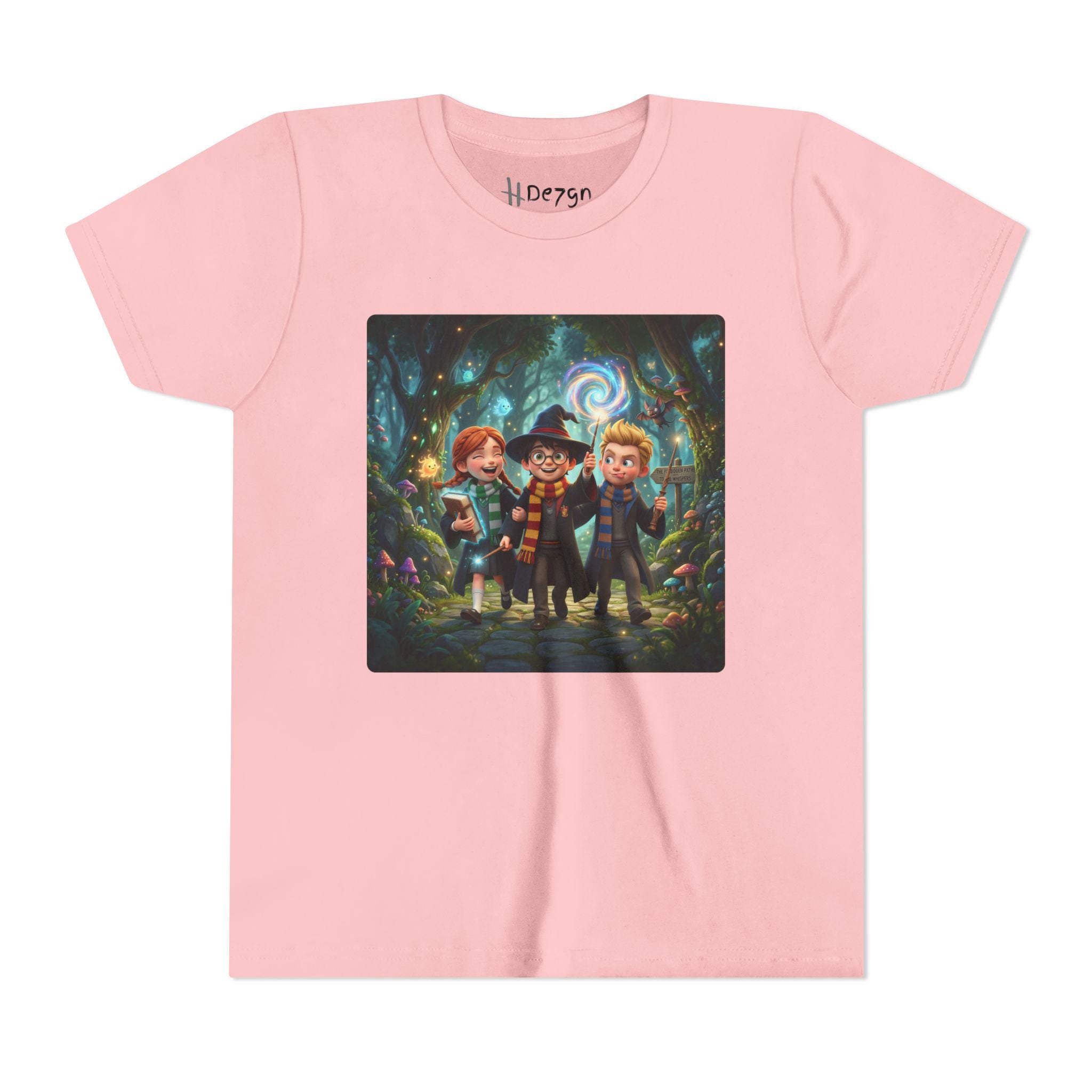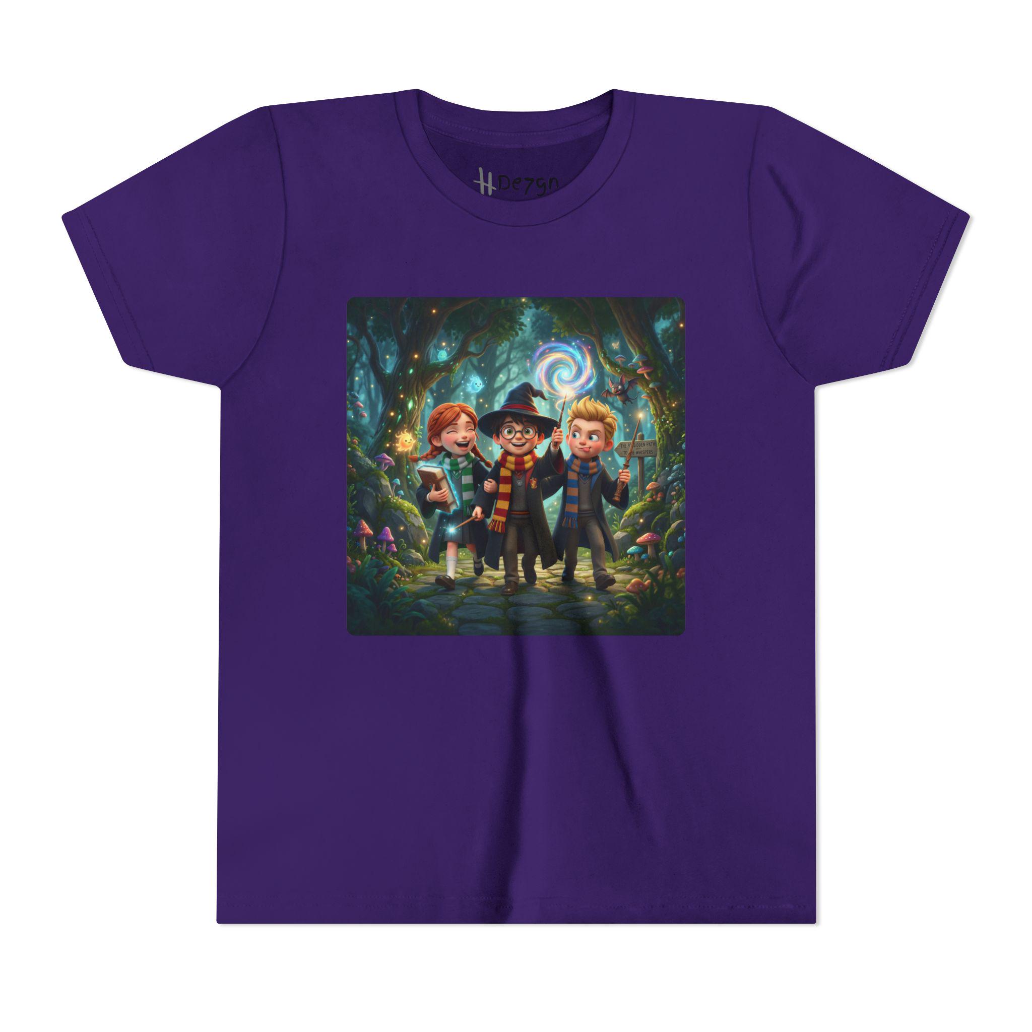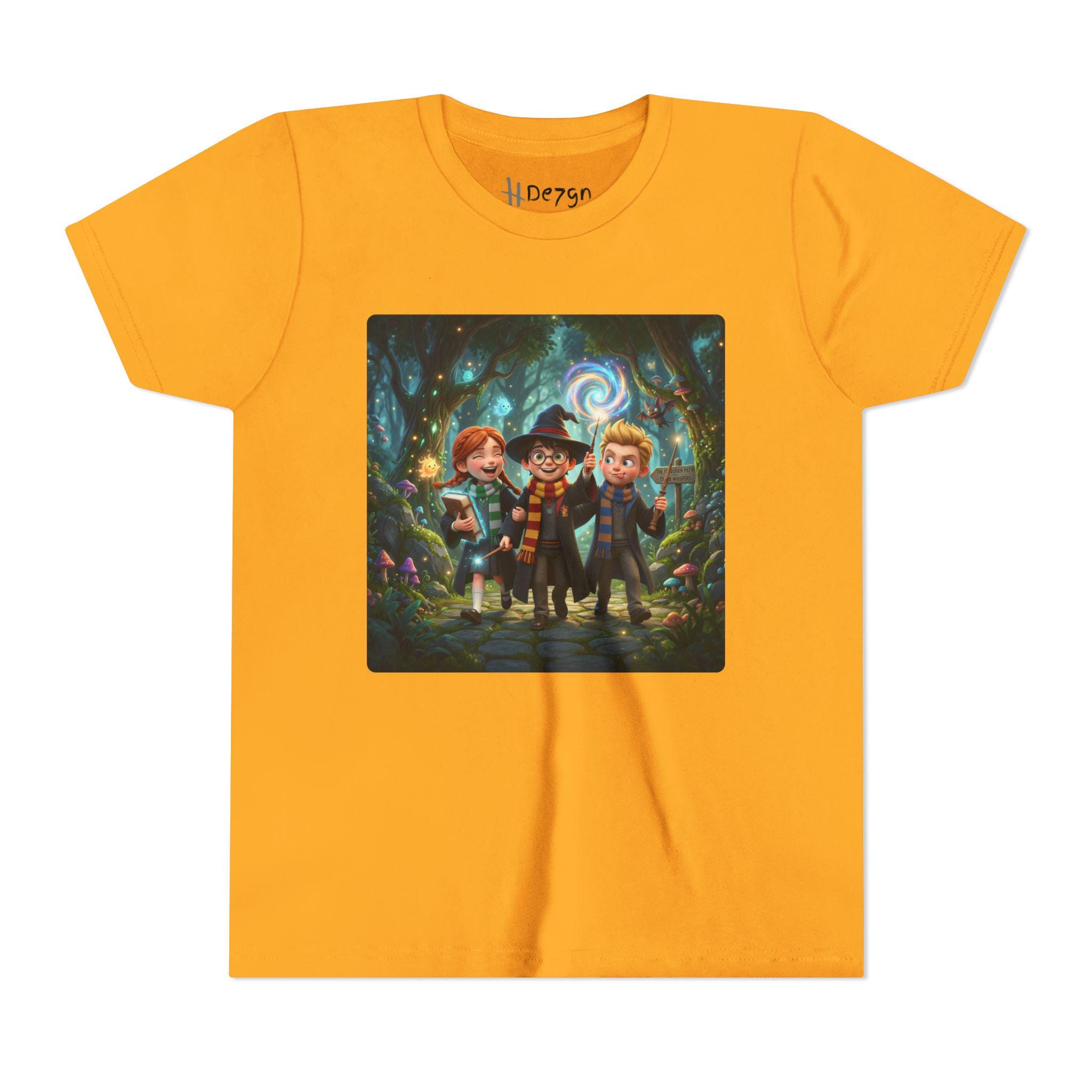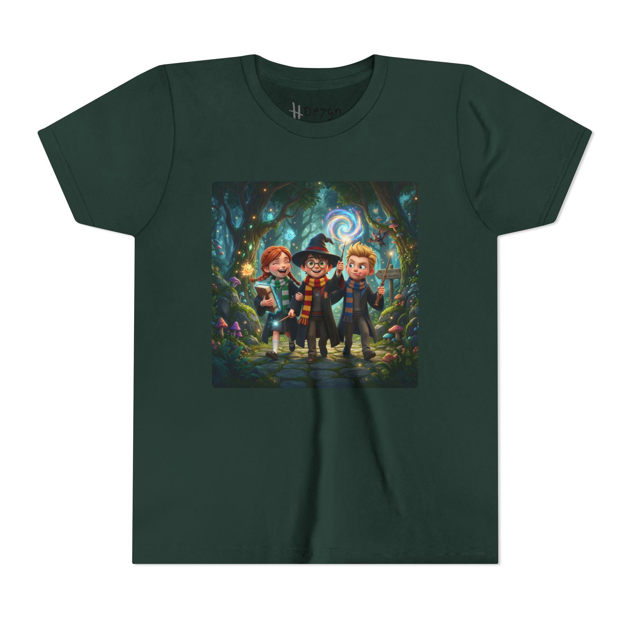 Cute Wizard Trio Tee featuring three young wizard friends – Ela, Roan, and